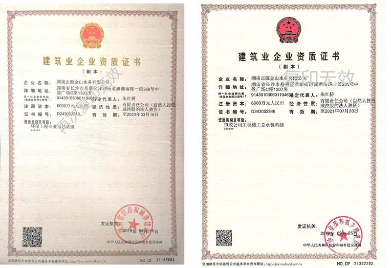 環(huán)保工程專業(yè)承包貳級(jí)、市政公用工程施工總承包叁級(jí)